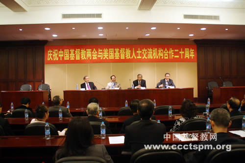 11月11日上午,中国基督教两会与美国基督教人士交流机构(Christian LeadershipExchange,以下简称CLE)合作二十周年庆祝会在上海召开。中国基督教两会主席傅先伟长老、会长高峰牧师等负责同工和部分省市牧长,以及CLE成员共50多人齐聚一堂、共叙友谊。