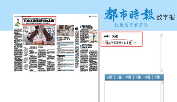 这篇稿件以“狂欢不是圣诞节的本意”为主标题,并以“许多昆明人不知圣诞本意,云南基督教协会澄清”为引题,以“三一国际礼拜堂欢迎市民体验正宗圣诞文化”为副标题。在这篇稿件中,《都市时报》介绍了靖玖玮牧师对圣诞节的介绍。靖玖玮牧师指出,圣诞节是为了纪念耶稣的降生,不是纪念圣诞老人。他还纠正,基督教在圣诞节时也没有送苹果的习惯,只是因为“苹”与“平”谐音,所以国内不少人喜欢互赠苹果求个吉利。