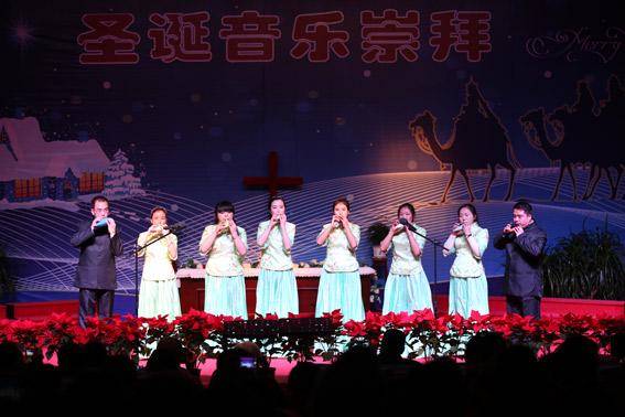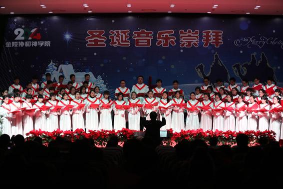 诗班在音乐崇拜会上献大合唱《基督降生》、《伯利恒之星》,男生小合唱《欢乐无穷尽歌》、《三博士歌》,主日学可爱的小朋友们表演了《和平君王主耶稣》,儿童诗班献唱《圣婴孩主耶稣》,研究科同学女声独唱《我心尊主为大》,金陵女生合唱团献唱了具有中国传统曲调的《耶稣美名歌》、《都来赞美神》等,金陵协和神学院诗班合唱《荣耀颂》、《当向耶和华欢呼歌唱》。