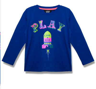Amenpapa是一个触动心灵的服装,我们坚持每一件衣服都有自己的故事。我会用三个形容词来形容我们的风格:大胆(Bold)、好玩(Playful)、有灵魂(Spiritual),是触摸心灵的一个风格。我们秋冬系列的主题是回归小孩:Call Out Your Child Spirit 呼唤孩子的心。我看了一个研究,说我们大人每一天只笑3-4次,但四岁小孩子却能笑300-400次。所以我想我可以用我们的系列去鼓励我自己跟其他人去回归小孩。