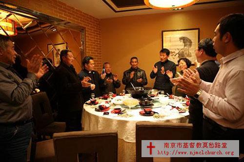 11日晚,莫愁路堂特地安排了欢送晚宴,孙长老分享了蒙山教会的情况,并表示这次出访很受激励,回去要继续为主做工,同时也欢迎教会同工前往蒙山进行交流。73岁的王兴倜弟兄为这次能够出访向神献上感恩,并恳请莫愁路堂为他们的家乡教会代祷。席间,大家还唱起了沂蒙山小调,让三位同工很是感动。
