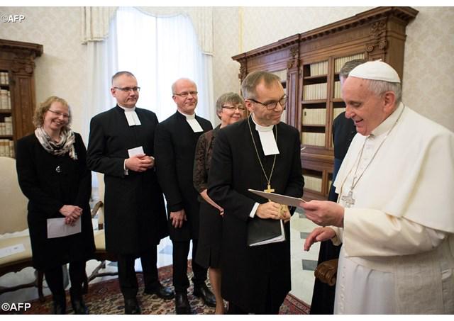 此外,教宗还提到芬兰和瑞典北欧信义宗-天主教关于在教会生活中成义主题的对话,希望双方在对教会论的对话中能进一步接近。他指出,“教会是藉着耶稣基督赐予我们的救恩标记和途径。”