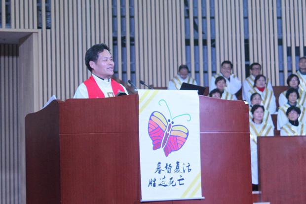 在证道环节中,李兰成牧师从以“主复活了”为题和会众进行分享。他讲道,今年的复活节很奇妙,因为和清明节连到了一起。“清明时节雨纷纷,路上行人欲断魂”,清明本是纪念亡人的时间,而清明节连上复活节,告诉我们哪里有死亡,哪里就有复活,哪里就有盼望,耶稣的复活已经宣告了这一点。