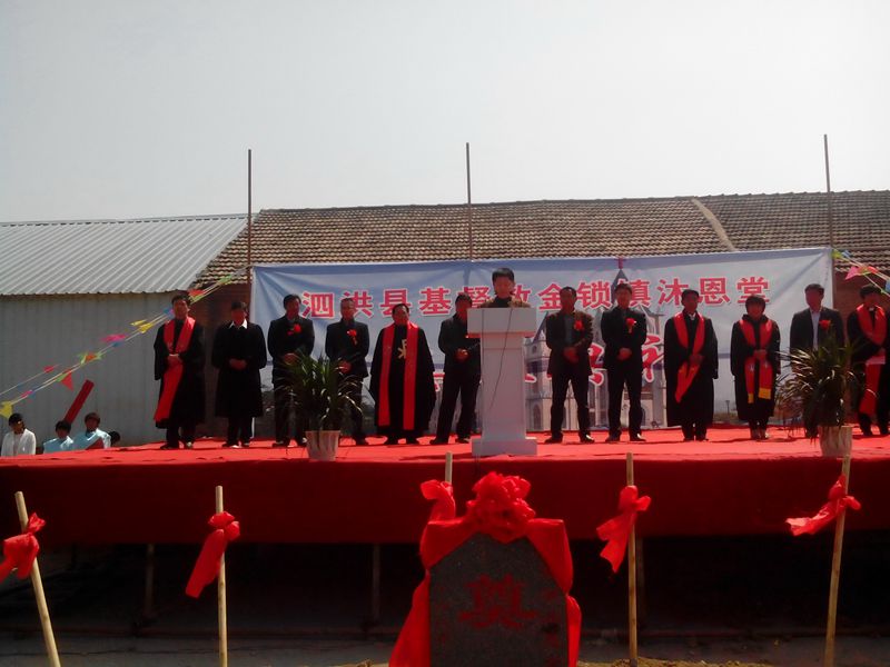 4月11日上午,江苏省宿迁市泗洪县金锁镇基督教沐恩堂举行隆重的奠基仪式。该堂规划建筑面积近2千平方米,建成后可容纳2千余人同时聚会。