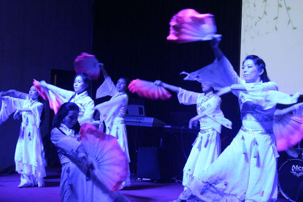 当晚音乐会上,简单的介绍之后,赞美继续。成立于2012年4月的舞蹈社带来了舞蹈《念》,表演者身着一袭袭古典白衣,手拿红白拼接的扇子,在诗朗诵的配乐中翩翩起舞,灵动而优美。