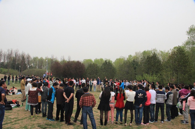 4月18日,北京海淀堂伯大尼团契、丰台堂百合谷团契、缸瓦市堂爱之泉团契100多人一起到奥林匹克森林公园踏青。大家一起唱诗、分享、祷告、做游戏。
