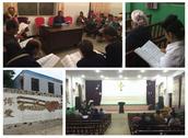 小水井村只有一个教会,是靠着村民们的奉献建盖的,它的“豪华”与四周土坯房的“陈旧”形成了鲜明对比。笔者随着龙绍荣牧师和张绍辉牧师,首先来到教会食堂,看到的是白墙上挂着的一个个相框,走近一看才知道是小水井合唱团到各地演出的照片。吸引笔者往前走的是从食堂里屋内传来的阵阵赞美声,想走进屋里听,并看看他们拿的诗歌本,又担忧打扰到他们赞美,于是停下脚步,只站在门口聆听,时不时地往里一瞥。他们是老年唱诗班成员,有的穿着拖鞋,有的穿着胶鞋,有的卷着裤管,甚至裤子上还沾着泥巴,很多人背着包,姐妹们几乎都穿着自制的苗族服装,他们脸上的皱纹清晰可辨。