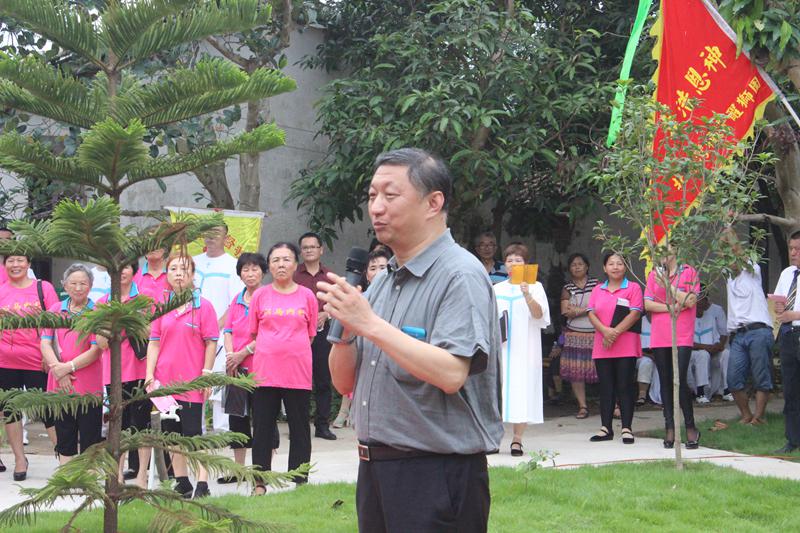 广西基督教两会王从联牧师代表广西教会致辞,他首先提到园子里所结的果子,如木菠萝和黄皮果,“这个教堂就是福音的果子,让那些平时可能不太有人关注的人得到了照顾,最早西门堂关心的就是麻风病人,圣经里也提到,耶稣基督用爱包容和医治麻风病人。这是福音的见证,也是耶稣爱我们的见证。”王牧师说。他还希望“果子”越结越多,因为神爱世人,我们要将爱心传递出去,生命是一样尊贵的。