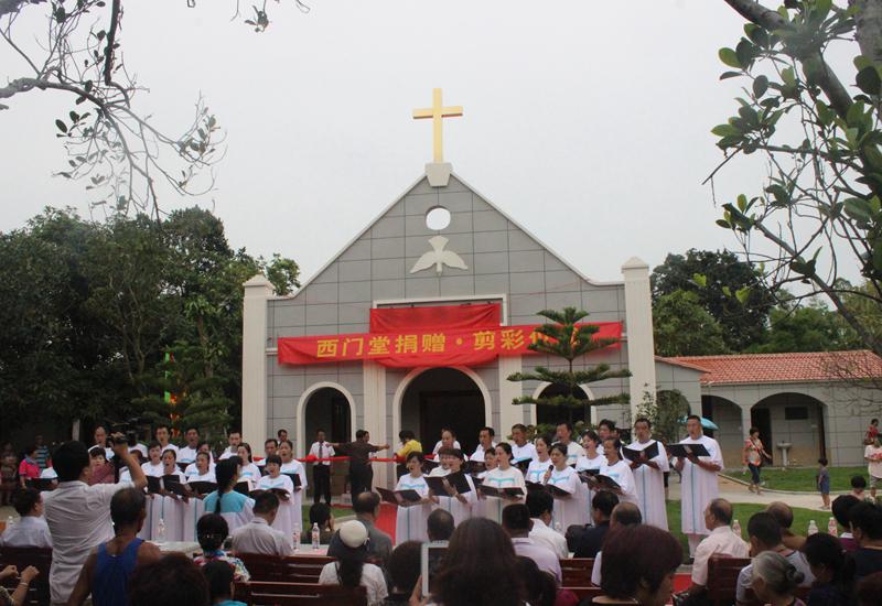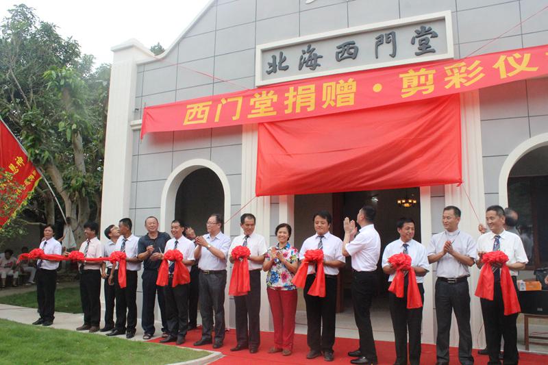 5月31日下午4点多,北海市合浦麻风村西门堂举行了揭幕剪彩典礼,来自上海和北海两市相关领导、上海和广西两地牧师代表、上海和北海两地佛教与天主教代表、西门堂信徒、北海市和合浦县教会信徒共100多人参加。
