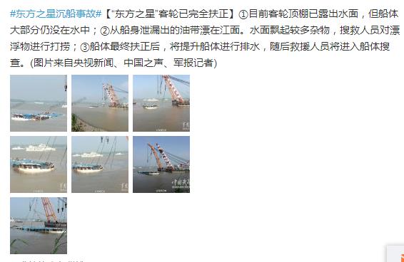 于6月1日翻沉的“东方之星”于5日早上午完全扶正,但生还人员仍暂停滞在14人。