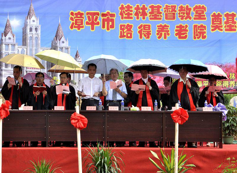 赞歌阵阵,彩旗飘扬。2015年6月13日,漳平市桂林教会举行隆重的新堂暨路得养老院奠基典礼。炎热的天气却挡不住来自厦门、泉州、石狮、漳州等四面八方教会的牧者、弟兄姐妹,300多人见证了这激动人心的时刻。
