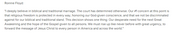 据澎湃国际报道,德克萨斯州州长格雷格·雅培便就最高法院的裁决发表声明称:“尽管最高法院已经下达裁决,但德克萨斯州公民的基本权利——宗教自由仍然受到保护。没有一个德克萨斯人需要按照这个违背了自身婚姻宗教信仰的最高法院裁决行事。”他还表示,得州宪法保证任何情况下没有人有权在宗教事务上控制或干扰良知。美国宪法第一修正案、德克萨斯州宗教自由恢复法案和新颁布的牧师保护法,都保证宗教自由。这些法律为得州人坚持对传统婚姻的认识提供了强有力的法律保护。他表示,他将像过去所做的那样,继续捍卫所有得州人的宗教自由——包括婚姻自由是一个男人和一个女人的结合这一认识。据悉,德克萨斯州是美国宗教信仰气氛最浓的地方,几乎所有居民都有周日去教堂的习惯。