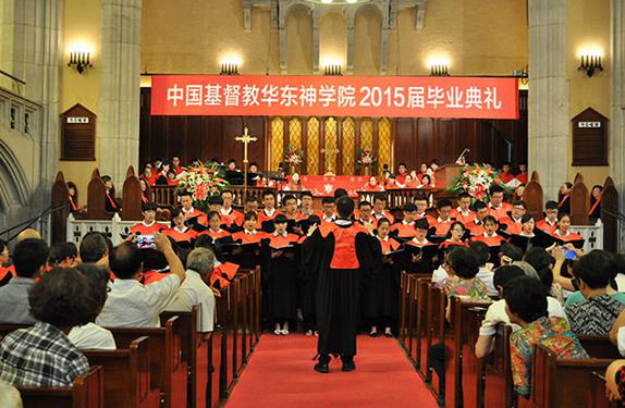 华东神学院2015届神学生毕业典礼(图:华东神学院网站)华东神学院2015届神学生毕业感恩礼拜暨毕业典礼6月25日在上海沐恩堂举行。今年华东神学院神学本科共有34位学生毕业,圣乐系共有33位学生毕业。