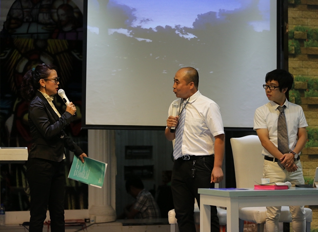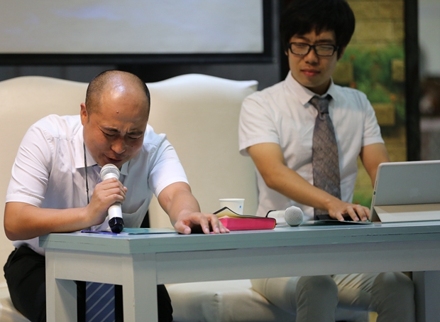 在第二届基督教艺术品博览会的爱宴环节,冯凯长老与四位弟兄姐妹通过一场圣剧讲述了基督徒企业存在的错误用人观、基督徒错误的工作观等问题。