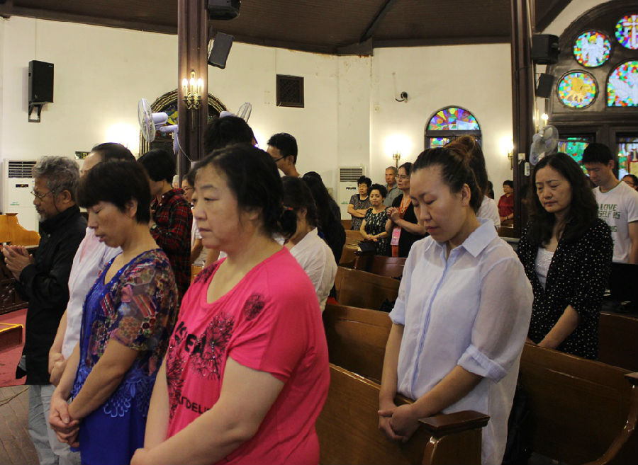 8月30日下午,崇文门堂信徒同声为中国与世界的和平祈祷(图/福音时报)