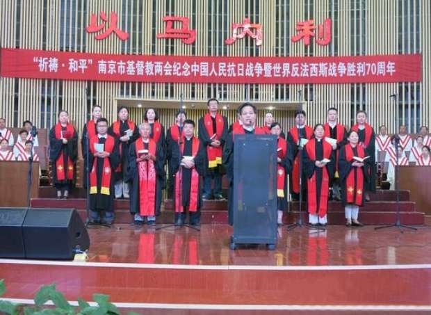 8月15日,南京市基督教两会在圣训堂举办“祈祷·和平”首届合唱节活动,以纪念中国人民抗日战争暨世界反法西斯战争胜利70周年。参加这一活动唱诗班成员就有600余名,分别来自市区14个教会;此外,还有17位牧师一起为中国及世界的和平祷告。当天,南京基督教两会还举办有“纪念抗战胜利70周年书画摄影资料展”,展出与抗日战争有关的60余幅书法、绘画、摄影等作品。圣训堂是南京市最大的教堂之一,能容纳5000人同时聚会,于2013年3月31日(复活节)举行献堂典礼。