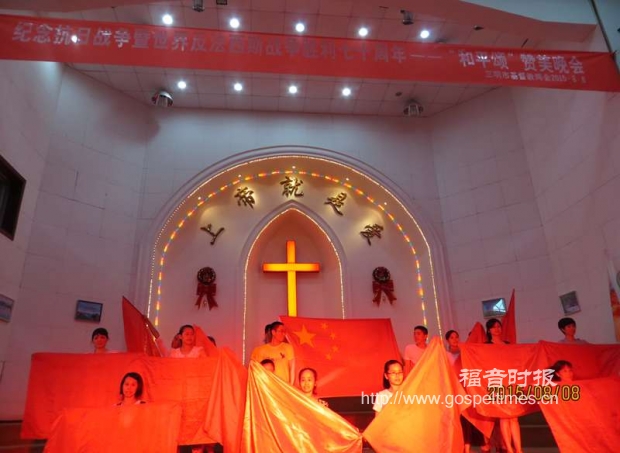 8月8日晚,福建省三明市基督教两会在梅列福音堂隆重举办“纪念抗日战争胜利暨世界反法西斯战争胜利70周年——《和平颂》赞美晚会”,三明市基督教协会会长方宇颂牧师发给福音时报的稿件中称,当地各市县教会在此次活动上表演《为和平祈祷》、《歌唱祖国》、《得胜中国》等歌曲和节目。