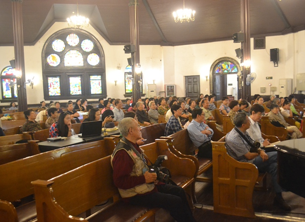 北京崇文门堂内拉着活动的横幅(图:福音时报)