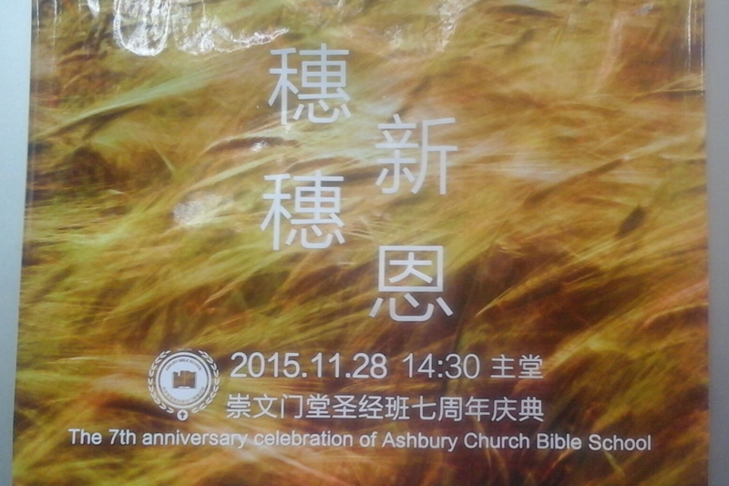 11月28日14:30,北京崇文门堂将在主堂举办主题为“穗穗新恩”的圣经班七周年感恩庆典。崇文门堂主任牧师柳翠敏表示,世上看重5周年、10周年,基督教特别看重7周年,因此计划举办该庆典。