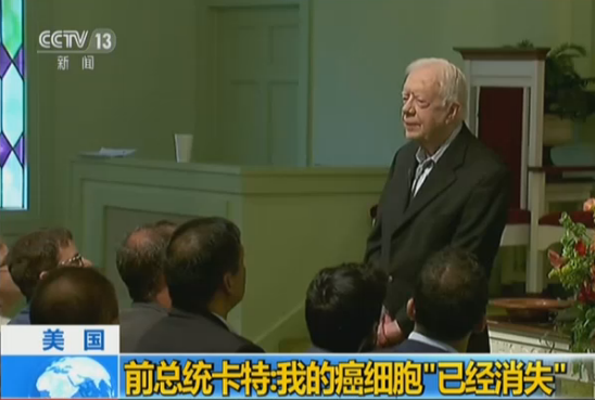 美国前总统卡特(Jimmy Carter)12月6日在教会授课时说到,最近一次检查显示,自己体内的癌症已经消失。今年8月份时他曾宣布自己罹患癌症,且已扩散。