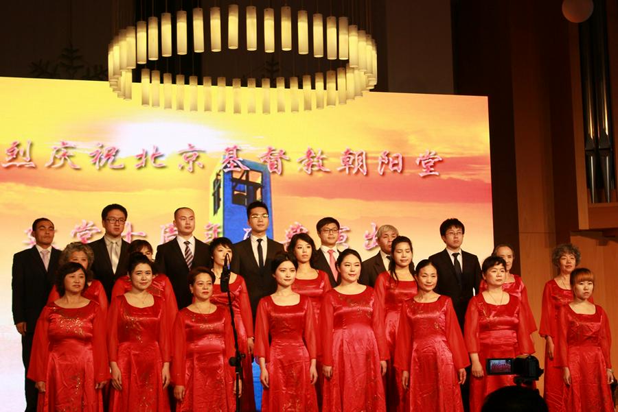 2015年12月12日晚,北京基督教会朝阳堂举办建堂十周年大型庆典晚会,回顾朝阳堂建堂历史并展望未来,弟兄姐妹献上合唱、京剧、独唱等20余个节目。