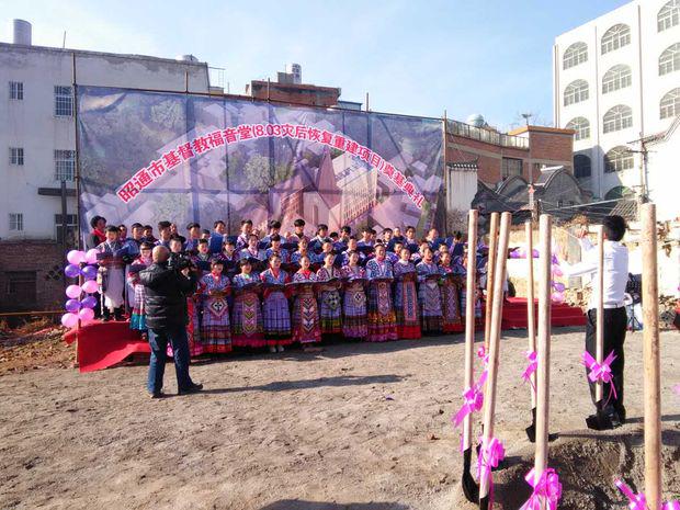 2月27日,昭通市基督教福音堂举行了8.03地震后恢复重建奠基典礼,来自云南昭通彝良、永善、昭阳区和贵州石门等地100多信徒参加。
