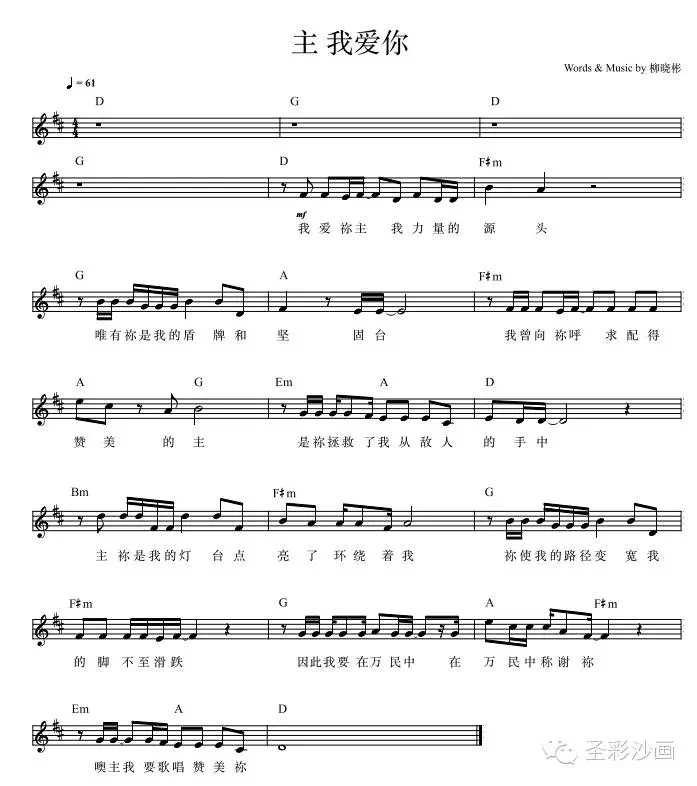 《主,我爱你》的创作素材是《诗篇》18篇,讲述的是大卫的故事。刘圣彩老师接到这首歌曲后,通过不同版本的圣经认真查考了经文,希望传达的信息合乎圣经。除了圣经经文,刘老师还在福音影视网看了十多部大卫的影片,其中包括大卫的电影以及动画片。再加上在网上查找一些与大卫有关的图片,串联了整个沙画故事。
