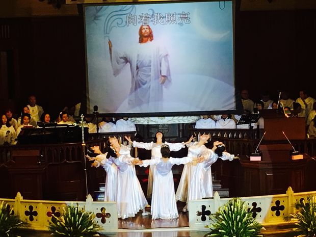 3月27日,上海市基督教沐恩堂举行了复活节感恩崇拜,以诗歌、舞蹈和圣剧等纪念主的复活,牧者在证道中从门徒们生命改变的角度向会众宣讲了耶稣复活的事实,并希望信徒们的生命能够得到更新和改变。
