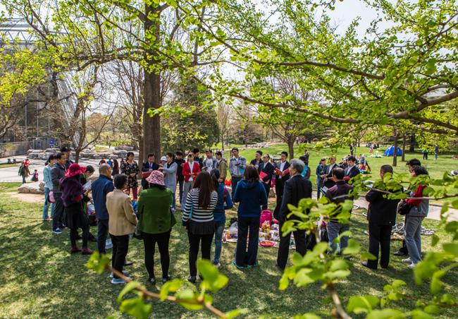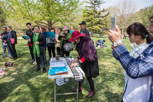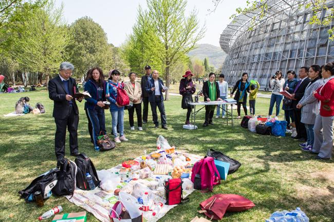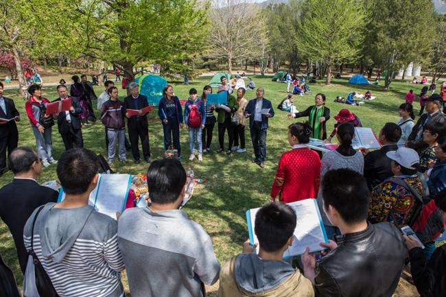 走出教会,走入人群,走进春光。4月10日阳光明媚,主日敬拜结束后,北京市基督教海淀堂父亲诗班与香柏树诗班以及主日学的小孩子去往植物园,踏青、赞美、运动、交流。这是一场在春日阳光下,在游园人群中的灵修活动。