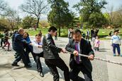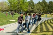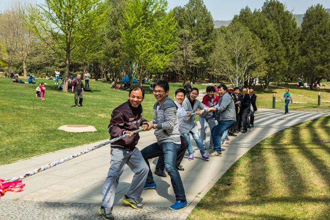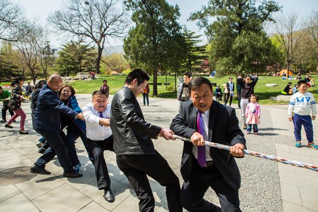此次活动还带来了一根粗粗的绳子,原来是要举行拔河比赛。“1——2——3!”父亲诗班的魏弟兄高喊三声,比赛双发便身体后倾,使劲儿把绳子往自己这边扯。虽然是比赛,“敌对”双方却都在脸上挂着快乐的笑容。