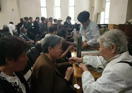 5月29日主日,新疆乌鲁木齐明德堂在第一堂崇拜结束后举行义诊活动,爱心医疗团队在一楼礼拜堂免费为弟兄姊妹进行义诊服务。