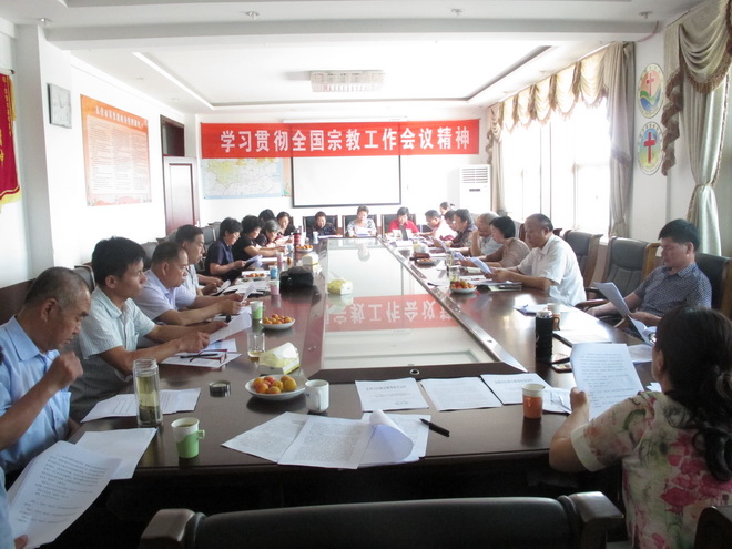 6月14日, 山东东营基督教会在圣恩堂组织学习全国宗教工作会议精神,来自东营区的同工共计30余人参加此次学习。