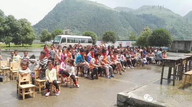 2016年6月21日,上海天爱公益基金会理事长陈志民长老、理事蔡慰慰同工等一行七人前往贵州省遵义市务川县(仡佬族苗族自治县),将六一期间上海部分教堂爱心义卖筹得的物资带给砚山镇毛田小学的孩子们。