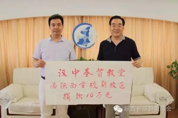 陕西省汉中市汉台区基督教两会及友爱路教堂成员6月27日向陕西圣经学校新校区捐款10万元,以支持新校区的建设事工。
