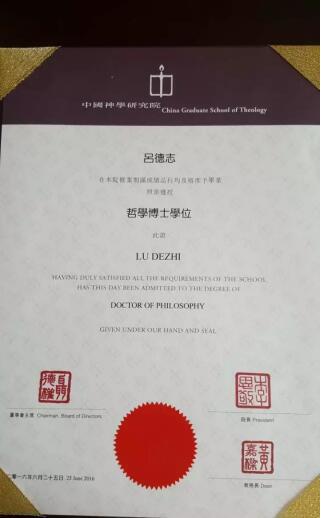 原文:热烈恭贺吕德志牧师荣获中国神学研究院哲学博士学位