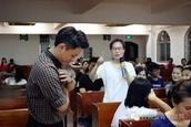 最后一幕取材于福音电影《消防员》片段,讲述了一对夫妻由于家庭生活的琐碎而引发激烈争吵的故事。表演虽短,却引起大家的沉思。在接下来的分组讨论环节,大家彼此畅谈今晚的短剧所带给自己的提醒,分享自己的感受和收获,并互相鼓励在未来的日子里,用爱践行荣耀神的生命!