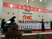 整个汇演从早上8点半开始,到中午12点结束。各个诗班依序上台献唱,五位专业评委现场打分,根据平均分选出一等奖,二等奖,三等奖。最终南昌市诗班获得一等奖,赣州市、余干县两个诗班获得二等奖,新余市、九江市、上饶市信州区获得三等奖。