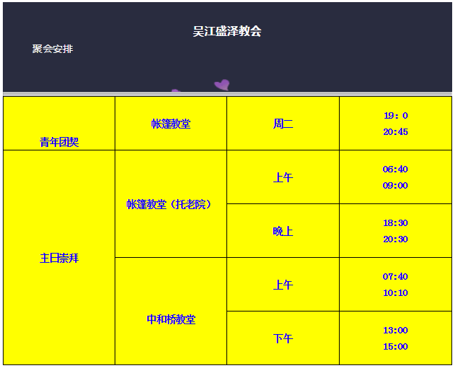 盛泽基督教会聚会时间: