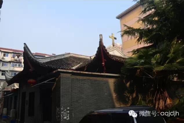 教堂屋顶的最上方是一尊金色十字架,这是教堂的标志。安庆教会表示,在人们的印象当中,教堂应该是有钟楼、有尖顶的哥特式建筑,这个称之为圣诞堂的教堂体现出了中国的特色。在清朝那个教堂全由西方教士设计的时代,能够出现这么一座中式风格浓重的教堂实属少见。