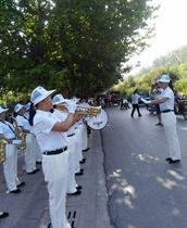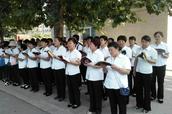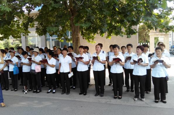 活动中教会做出展示牌介绍基督教信仰的“十诫”以及耶稣基督。弟兄姐妹身穿统一的服装唱诗赞美神,并用各样的乐器配合此次活动。