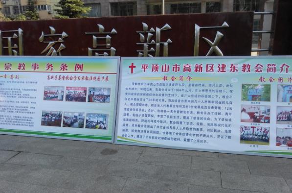 近日,河南省平顶山市高新区教会举办教会宣传月活动,高阳路小营教会、遵化店镇蒲楼教会做出展示牌介绍教会。