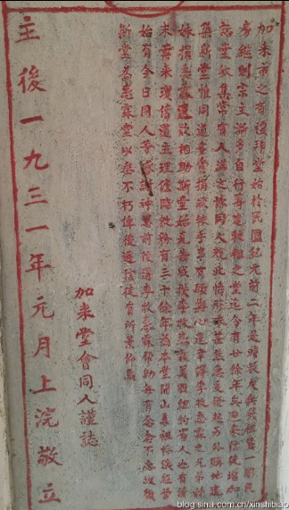 在加来堂我意外见到了1931年立的建堂纪念碑,被局促地嵌在侧门旁边一个不起眼的位置。