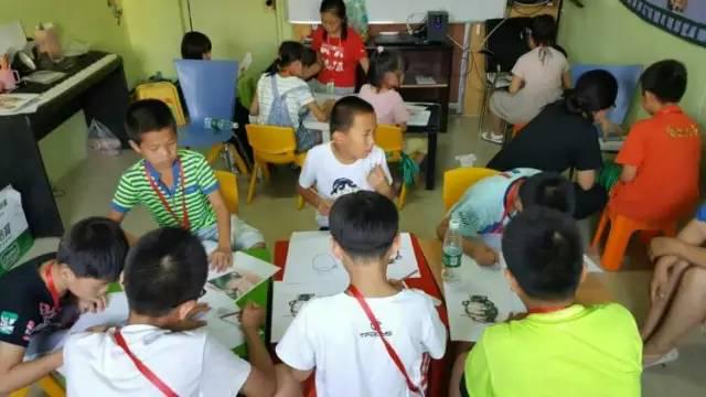托管班的内容包括辅导孩子们的暑期作业、讲解故事、临摹素描、制作小手工、快乐英语、优秀动画欣赏、参观博物馆、书法练习、作文课等等。