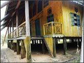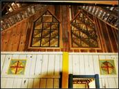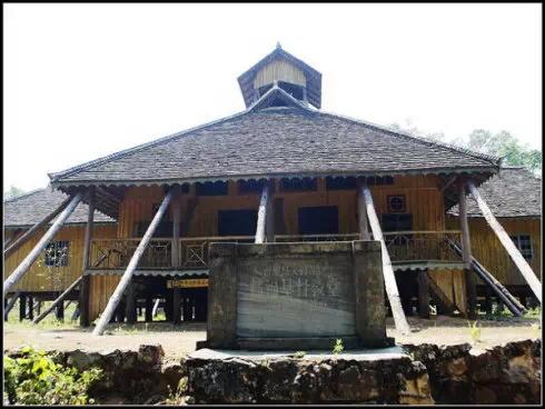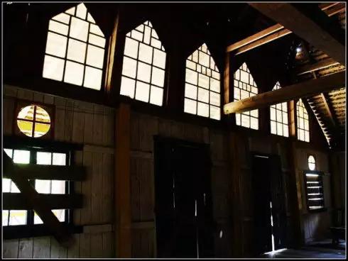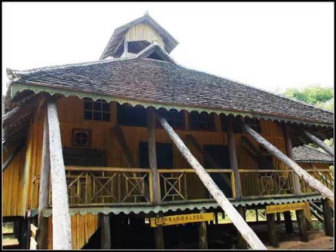 “艺术到了最高阶段是与宗教直接相联系的”,糯福基督教堂建筑艺术杜忠初黑格尔曾说过。建筑艺术是以空间结构的形式表现的,人们把没有生命的自然物质进行加工,使它与人的心灵结成血肉因缘,成为一种外部的艺术世界。糯福教堂的特点在于它独特的构造,可谓是西南边陲一个中西结合的建筑艺术文物。看外表是拉祜族干栏式围廊建筑,木架瓦顶,四周为木板壁,装有欧美式三角形窗子,半圆形门,屋檐板为拉祜族锯齿形服饰图案,平面呈纵向双十字形相连木结构,正厅为礼拜堂,长27.6米,宽11.4米。左右有4间耳室,每间为6×8米。左右四面耳室为拉祜文教室。教堂下部有拉祜族干栏式脚柱12排129棵,呈梅花形排列。