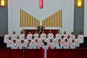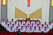 17个诗班依次登台献唱,每个诗班献唱完毕,都由两位老师分别点评,从大家的姿势、气息、发声、声部、声音、弹琴、指挥上分别作了详细指导,从诗班的综合水平给予劝勉和鼓励。