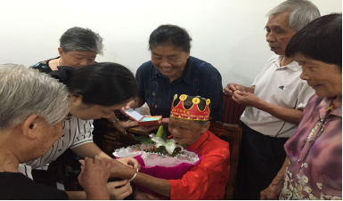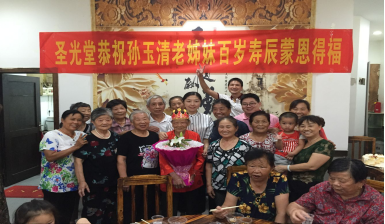 2016年8月21日是武汉市圣光堂孙玉清老姊妹的百岁寿辰,圣光堂同工探访并为老人贺寿。