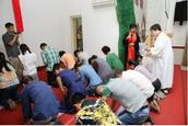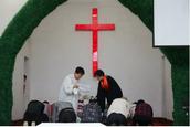 据城南堂肖淑纯教师介绍,本次洗礼是点水礼,由杨俊辉牧师施洗。洗礼分三组进行,过程中诗班带领全体会众一直唱赞美诗。