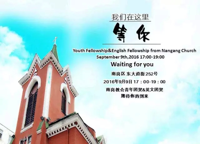 哈尔滨市南岗教会青年团契即将举办中英文诗歌赞美会根据南岗教会青年团契8月30日微信消息,9月9日,黑龙江省哈尔滨南岗教会青年团契与英文团契将共同举办一场中英文诗歌福音赞美会,本次赞美会将以中英文诗歌演唱、敬拜赞美、福音圣剧及舞蹈等形式见证基督的爱与福音。