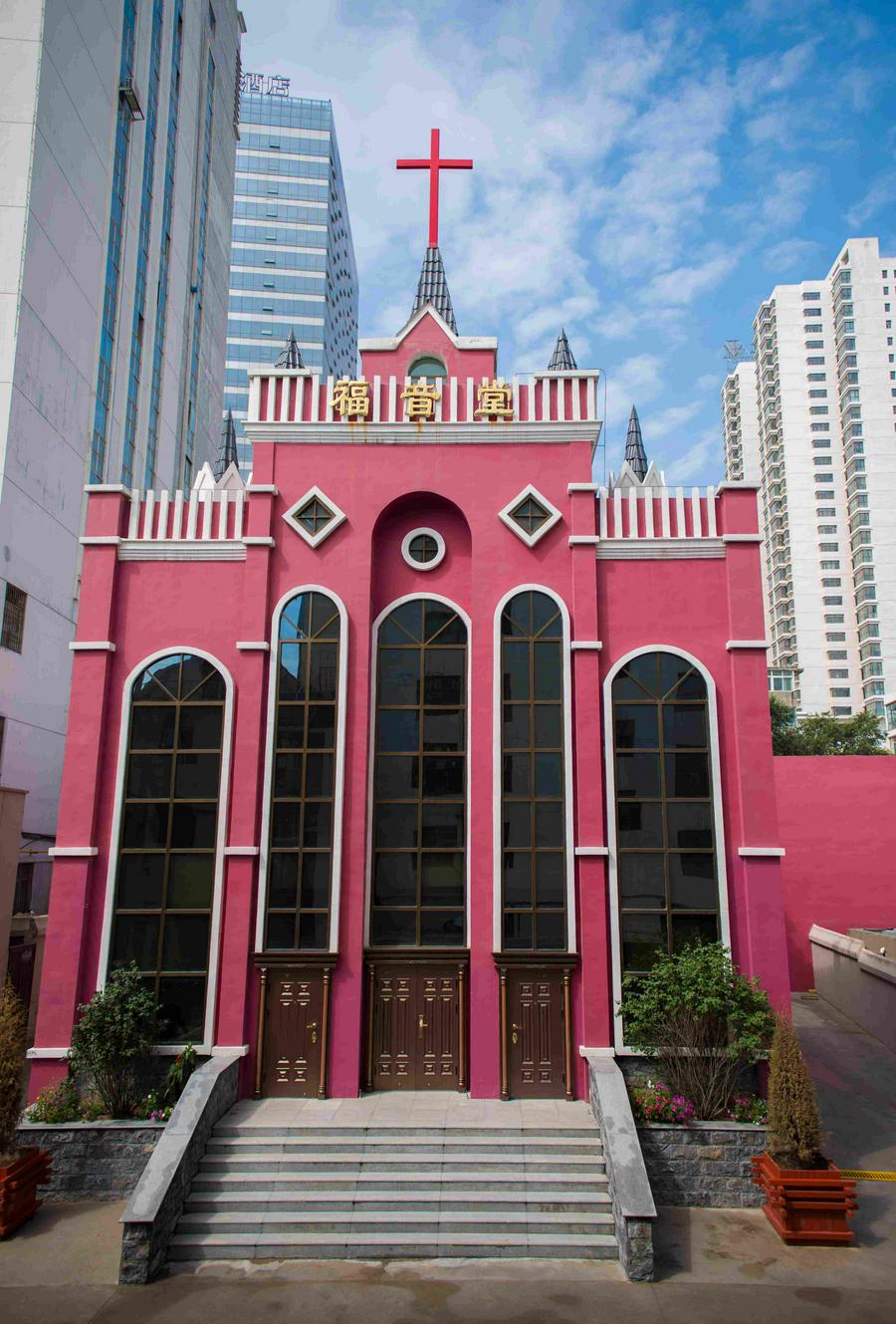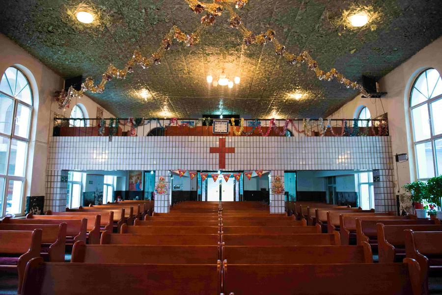 青海西宁市教场街基督教堂(原名福音堂)始建于1891年,位于西宁市中心区域,占地4329㎡,为英国内地会传教士胡立礼牧师所建。