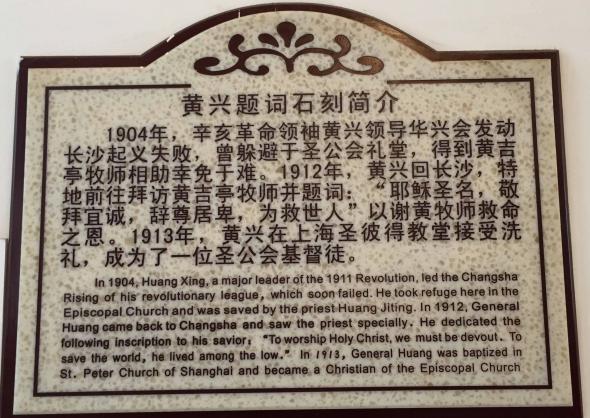 辛亥革命领袖黄兴曾在此避难,现大门内墙上仍然保存着1912年黄兴的题词“耶稣圣名,敬拜宜诚;辞尊居卑,为救世人。”